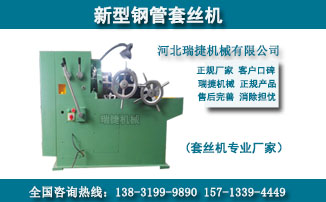 瑞捷套絲機設(shè)備采用液壓裝置成功解決勞動強度大,效率低,且無定位裝置,絲扣長短難控制等弊端,可一次型完成螺紋加工成型且螺紋牙形飽滿光滑。套絲機的主要部件及結(jié)構(gòu)是由套絲機床的傳動系統(tǒng),支架系統(tǒng),切線板牙頭,定位裝置及液壓系統(tǒng)組成,工作時只要將工件裝入夾鉗,其余程序?qū)⒆詣油瓿桑僮骱唵?,通俗易懂,瑞捷套絲機廠家直銷,質(zhì)量有保證,減少不必要的中間環(huán)節(jié),為客戶帶來實實在在的優(yōu)惠政策,歡迎新老客戶洽談合作事宜和來電咨詢.