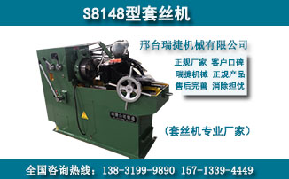 瑞捷套絲機設(shè)備采用液壓裝置成功解決勞動強度大,效率低,且無定位裝置,絲扣長短難控制等弊端,可一次型完成螺紋加工成型且螺紋牙形飽滿光滑。套絲機的主要部件及結(jié)構(gòu)是由套絲機床的傳動系統(tǒng),支架系統(tǒng),切線板牙頭,定位裝置及液壓系統(tǒng)組成,工作時只要將工件裝入夾鉗,其余程序?qū)⒆詣油瓿桑僮骱唵?,通俗易懂,瑞捷套絲機廠家直銷,質(zhì)量有保證,減少不必要的中間環(huán)節(jié),為客戶帶來實實在在的優(yōu)惠政策,歡迎新老客戶洽談合作事宜和來電咨詢.